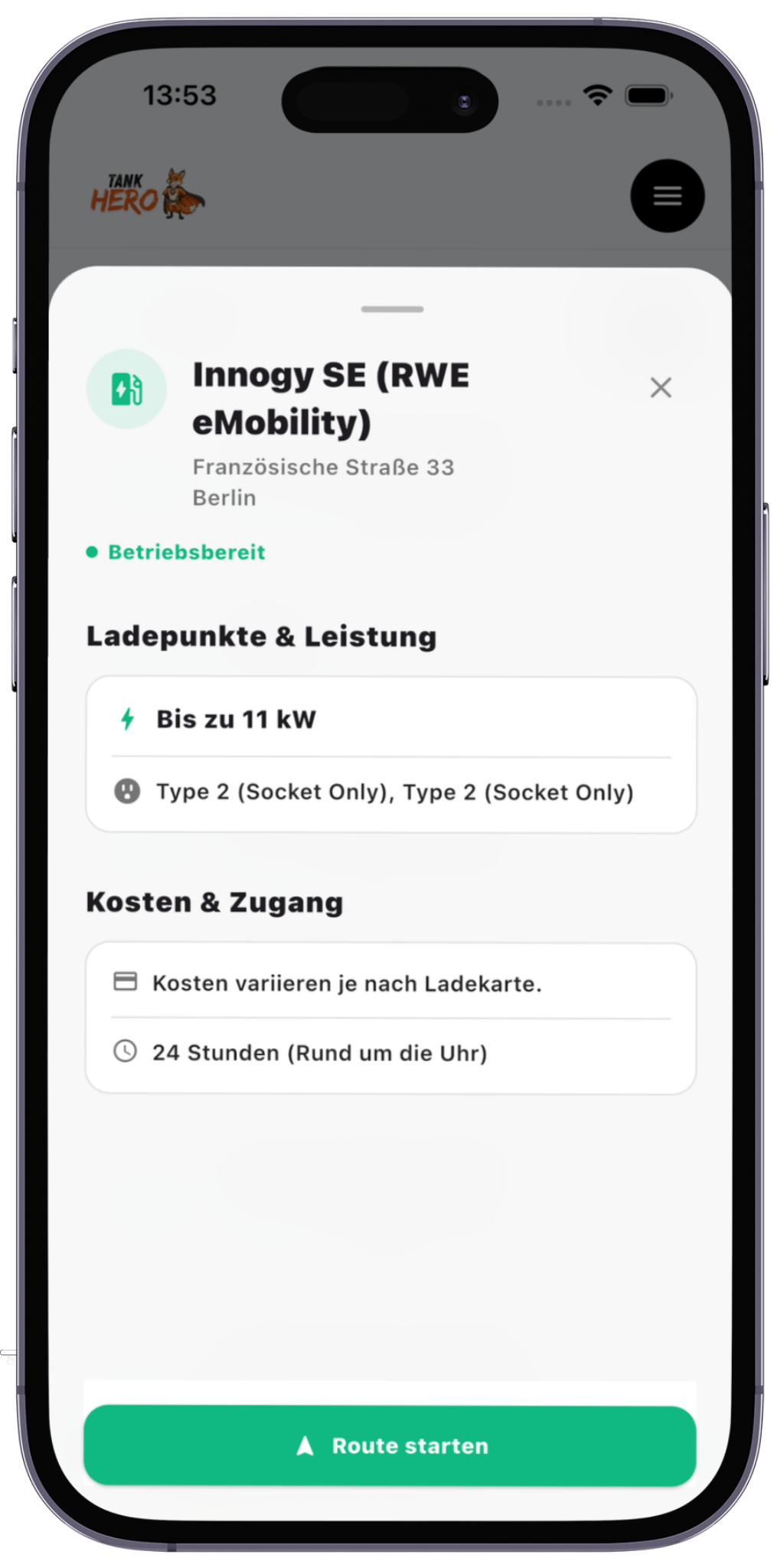E-Auto Fahrer aufgepasst: Wir zeigen dir Ladesäulen in deiner Nähe, Steckertypen und Ladeleistungen übersichtlich und in Echtzeit.